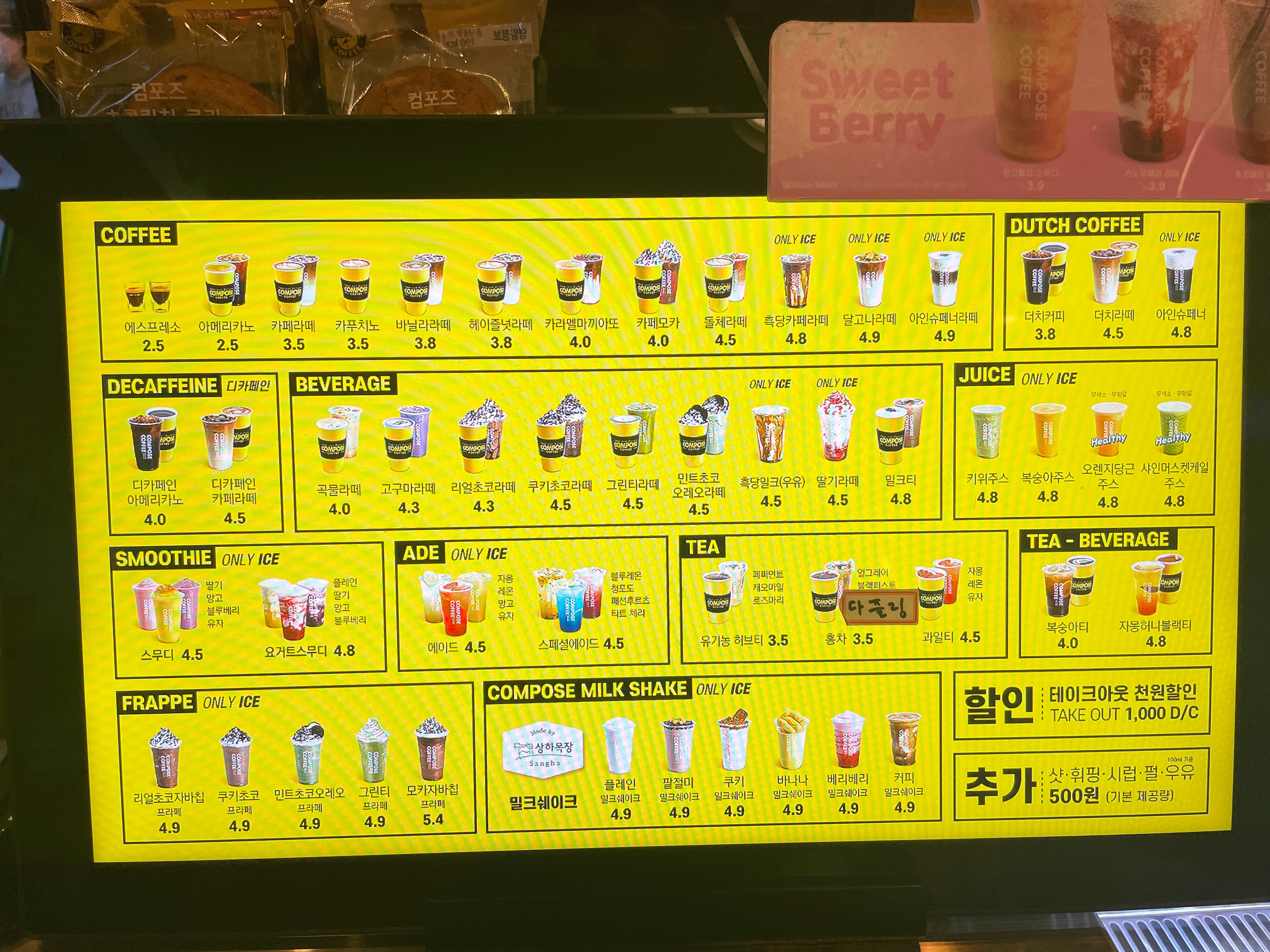 컴포즈커피는 매장에서 먹어본 적이 없고 매번 테이크아웃만 해서 늘 1,500원인줄 알았는데,